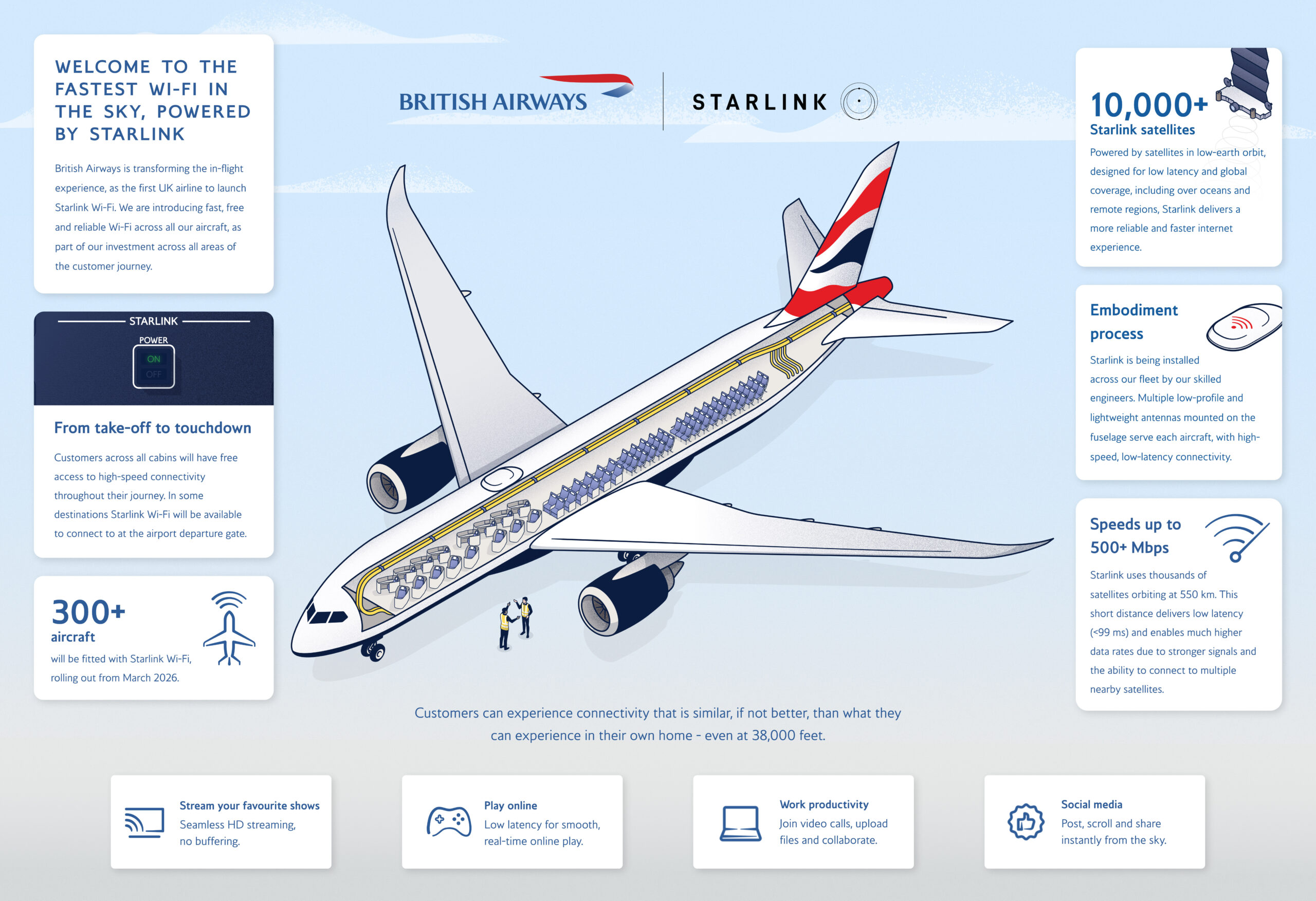 British Airways has officially launched Starlink-powered in-flight Wi-Fi, becoming the first UK airline to introduce the service.